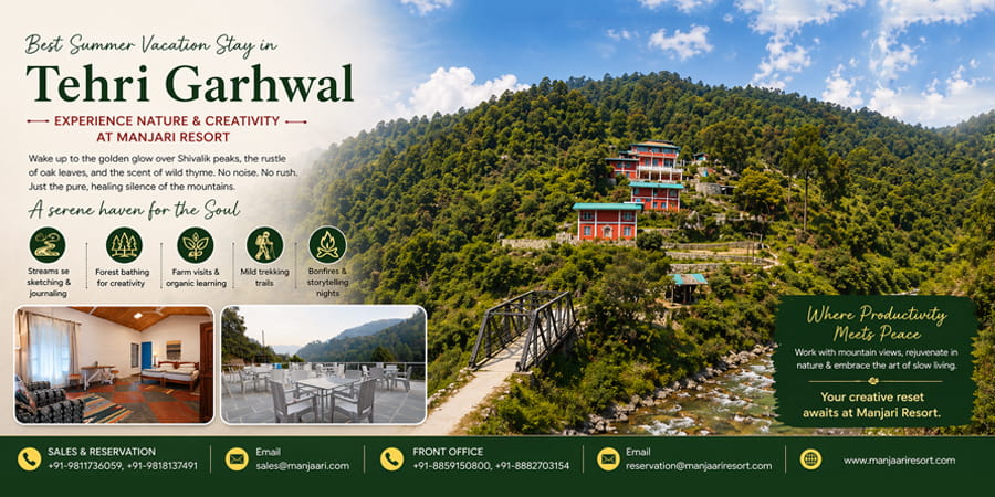 The morning doesn’t break with a roar here; it arrives as a soft golden glow over the Shivalik peaks. You wake to the rhythmic rustle of oak leaves and the scent of wild thyme. There are no sirens, no notifications—only the profound, healing silence of the mountains. This is your summer vacation in Tehri Garhwal, reimagined.